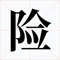 又如:险要;险峰;险特(高峻挺立);险坂(陡峭的山坡);险栈(险峻的栈道)