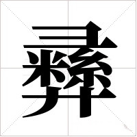 “彞” 字共有 18 画,拼音:yí,注音:ㄧˊ,部首:难检字,笔画数:18 画,字体结构:上中下结构,五行:金,五笔:VOXA,Unicode编码:U+5F5E,郑码:XBZE,仓颉:NMFFT,“彞”字笔顺为:フ一一丶ノ一丨ノ丶フフ丶丨ノ丶一ノ丨