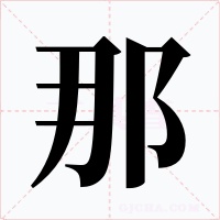 (形声。小篆字形,从邑,冄(rǎn)声。邑与地名或行政区域有关。后省作“那”。①本义:国名。《说文》:“西夷国。”本读nuó。②指示代词。特指某个人、某个时间、某个地方或某个事物。不一定是远指之词,如“那件事你我心里都清楚。”)