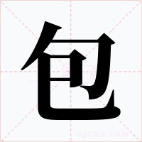 (会意。小篆字形,外边是“勹”。中间是个“巳”(sì)字,“象子未成形”。“勹”就是“包”的本字。本义:裹)