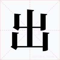“出” 字共有 5 画,拼音:chū,注音:ㄔㄨ,部首:凵,笔画数:5 画,字体结构:独体字,五行:金,五笔:BMK,Unicode编码:U+51FA,郑码:ZIZI,仓颉:UU,“出”字笔顺为:フ丨丨フ丨