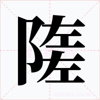 “隓” 字共有 12 画,拼音:huī,注音:ㄏㄨㄟ|ㄉㄨㄛˋ,部首:阝,笔画数:12 画,字体结构:左右结构,五行:火,五笔:BDAA,Unicode编码:U+9693,郑码:YGGB,仓颉:NLKMM,“隓”字笔顺为:フ丨一ノ一丨一一ノ一丨一