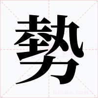 “勢” 字共有 13 画,拼音:shì,注音:ㄕˋ,部首:力,笔画数:13 画,字体结构:上下结构,五行:金,五笔:FWFL,Unicode编码:U+52E2,郑码:BOSY,仓颉:GIKS,“勢”字笔顺为:一丨一ノ丶一丨一ノフ丶フノ