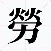“勞” 字共有 12 画,拼音:láo,注音:ㄌㄠˊ,部首:力,笔画数:12 画,字体结构:上下结构,五行:火,五笔:OOPL,Unicode编码:U+52DE,郑码:UOWY,仓颉:FFBKS,“勞”字笔顺为:丶ノノ丶丶ノノ丶丶フフノ