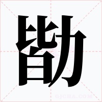 “勓” 字共有 11 画,拼音:kài,注音:ㄎㄞˋ,部首:力,笔画数:11 画,字体结构:左右结构,五行:木,五笔:XXRL,Unicode编码:U+52D3,郑码:RRNY,仓颉:PAKS,“勓”字笔顺为:一フノフノ丨フ一一フノ