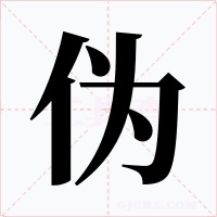 又如:伪诈(欺诈);伪怠(欺诈懈怠);伪服(骗居尊位);伪人(伪夫。伪善、诈伪之人);伪巧(诈伪奸滑);伪臣(诈伪之臣);伪民(诈伪的人);伪行(诈伪的行为)