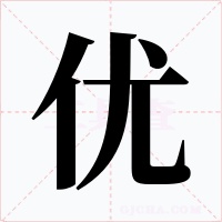 又如:优差美缺(美差肥缺;好的职位);优行生(品学兼优的生员);优劣(优和劣。指强弱、大小、好坏、工拙等);优绌(优劣);优壮(优美遒劲)
