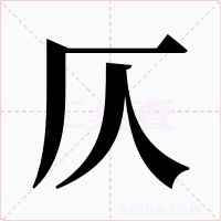 (会意。小篆字形象人侧身在山崖洞穴里的形状。本义:倾斜)