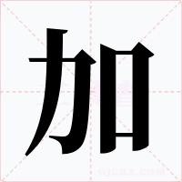 又如:加注解;加符号;加一钱(收到本金十分之一的高利贷);加二(二成);加绪含容(增加功绩,包含宽容。绪:功绩);加纳(加官受职);加年(年龄增长);加兵(增加兵力)
