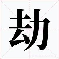 “劫” 字共有 7 画,拼音:jié,注音:ㄐㄧㄝˊ,部首:力,笔画数:7 画,字体结构:左右结构,五行:木,五笔:FCLN,Unicode编码:U+52AB,郑码:BZYM,仓颉:GIKS,“劫”字笔顺为:一丨一フ丶フノ