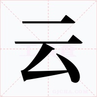 (象形。《说文》:古文字形。象云回转形。“雲”为会意字,从雨,从云。本义:云彩。这个意义后作“雲”)