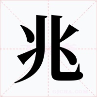 又如:兆民(古称太子之民,后泛指众民,百姓。又称“兆人”、“兆姓”、“兆萌”、“兆蒙”、“兆庶”、“兆众”、“兆黎”、“兆灵”)