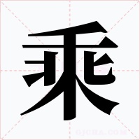 又如:乘丘(形同马车的土丘);乘白(古代指战车和军旗);乘车(安车;古代行丧葬礼所用的魂车);乘马(四匹马拉的车);乘传(古代驿站用的四匹下等马拉的车子);乘广(春秋时楚王或主帅率领的兵车);乘路(即王路。周代天子所乘之车)