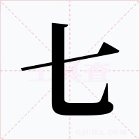“七” 字共有 2 画,拼音:qī,注音:ㄑㄧ,部首:一,笔画数:2 画,字体结构:独体字,五行:金,五笔:AGN,Unicode编码:U+4E03,郑码:HD,仓颉:JU,“七”字笔顺为:一フ