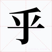 (会意。甲骨文字形,上面的符号表示声音上扬,下面的符号表示舒气。“乎”是“呼”的本字。当“乎”借作语气词、介词用之后,就另造了一个从“口”的形声字“呼”。本义:吐气)