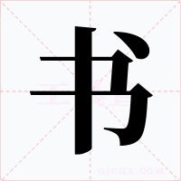 (形声。从聿,者声。聿(yù),即笔。隶书省“者”成“曰”。《说文》:“书,箸也。”箸(著)即显明。合起来表示用笔使文字显明,“者、箸”音近,故“者”有表意作用。本义:书写,记录,记载)