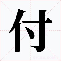 托付。委托他人照料或管理〖entrust〗。如:付仗(付托依靠);付属(托付);付嘱(吩咐;叮嘱);付授(嘱托授予)