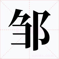 “邹” 字共有 7 画,拼音:zōu,注音:ㄗㄡ,部首:阝,笔画数:7 画,字体结构:左右结构,五行:金,五笔:QVBH,Unicode编码:U+90B9,郑码:RXY,仓颉:NSNL,“邹”字笔顺为:ノフフ一一フ丨
