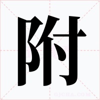 又如:附势;附籍天潢(依附皇室);附郭(近城的地方;郊外);附纳(依附交结);附顺(依附顺从);附权(依附权贵)
