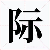“际” 字共有 7 画,拼音:jì,注音:ㄐㄧˋ,部首:阝,笔画数:7 画,字体结构:左右结构,五行:火,五笔:BFIY,Unicode编码:U+9645,郑码:YBK,仓颉:NLMMF,“际”字笔顺为:フ丨一一丨ノ丶