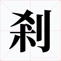 “剎” 字共有 9 画,拼音:chà,注音:ㄔㄚˋ|ㄕㄚ,部首:刂,笔画数:9 画,字体结构:左右结构,五行:金,五笔:QSYJ,Unicode编码:U+524E,郑码:OSSK,仓颉:KDLN,“剎”字笔顺为:ノ丶一丨ノ丶丶丨丨
