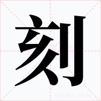 雕,用刀子挖:刻本(雕版印成的书本)。刻石。刻字。刻板。刻舟求剑。