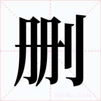 (会意。从刀从册。册是简册,把若干竹简编穿在一起叫“册”。简册的内容有问题,就用刀除掉,所以从“刀”。本义:削除)