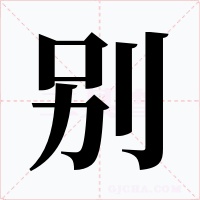 (会意。从冎(guǎ),从刀。“冎”,《说文》:“剔人肉置其骨也。”“别”的小篆形体,是一个表示用刀剔骨头的会意字。本义:分解)