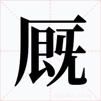 (形声。古文字中,“厂”(hǎn)与“广”常常通用,都表示与房舍、居住有关。本义:马圈,马棚)