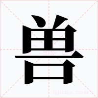 (象形。小篆字形。上象耳,中象头,下象足踩地。兽本是禽兽的总称。古另有“獸”字,指捕捉禽兽的活动。二字通用。本义:禽兽的总称)