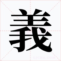 “義” 字共有 13 画,拼音:yì,注音:ㄧˋ,部首:八,笔画数:13 画,字体结构:上下结构,五行:金,五笔:UGTT,Unicode编码:U+7FA9,郑码:UCMH,仓颉:TGHQI,“義”字笔顺为:丶ノ一一丨一ノ一丨一フノ丶