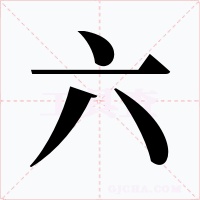又如:初六(由下而上的第一个阴爻);上六(最上一个即第六个阴爻);六爻(爻,是构成《易》卦的基本符号。每三爻会成一卦。两卦即是六爻);六出(雪花。因呈六角形)