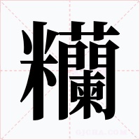 “糷” 字共有 26 画,拼音:làn,注音:ㄌㄢˋ,部首:米,笔画数:26 画,字体结构:左右结构,五行:火,五笔:OAUI,Unicode编码:U+7CF7,郑码:UFFL,仓颉:FDTAW,“糷”字笔顺为:丶ノ一丨ノ丶一丨丨丨フ一一丨フ一一一丨フ丶ノ一丨ノ丶