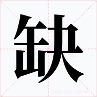 (形声。从缶(fǒu),夬(guài)声。缶,瓦器。“夬”也有表意作用。水缺为“决”,玉缺为“玦”,器缺为“缺”,都有破损之意。本义:器具破损)同本义。引申为缺漏而不完整〖imperfect;imcomplete〗