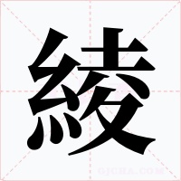 “綾” 字共有 14 画,拼音:líng,注音:ㄌㄧㄥˊ,部首:糹,笔画数:14 画,字体结构:左右结构,五行:火,五笔:XFWT,Unicode编码:U+7DBE,郑码:ZBOR,仓颉:VFGCE,“綾”字笔顺为:フフ丶丶丶丶一丨一ノ丶ノフ丶