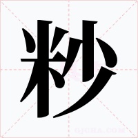 “粆” 字共有 10 画,拼音:shā,注音:ㄕㄚ|ㄔㄠˇ,部首:米,笔画数:10 画,字体结构:左右结构,五行:金,五笔:OITT,Unicode编码:U+7C86,郑码:UFKM,仓颉:FDFH,“粆”字笔顺为:丶ノ一丨ノ丶丨ノ丶ノ