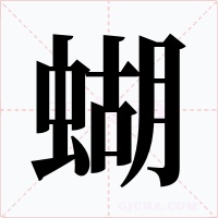 (形声。从虫,胡声。本义:蝴蝶:虫名。种类很多)