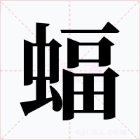 “蝠” 字共有 15 画,拼音:fú,注音:ㄈㄨˊ,部首:虫,笔画数:15 画,字体结构:左右结构,五行:水,五笔:JGKL,Unicode编码:U+8760,郑码:IAJK,仓颉:LIMRW,“蝠”字笔顺为:丨フ一丨一丶一丨フ一丨フ一丨一