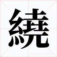 “繞” 字共有 18 画,拼音:rào,注音:ㄖㄠˋ,部首:糹,笔画数:18 画,字体结构:左右结构,五行:金,五笔:XFFQ,Unicode编码:U+7E5E,郑码:ZBBG,仓颉:VFGGU,“繞”字笔顺为:フフ丶丶丶丶一丨一一丨一一丨一一ノフ