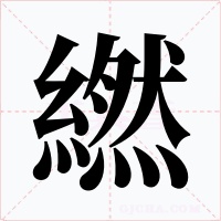 “繎” 字共有 18 画,拼音:rán,注音:ㄖㄢˊ,部首:糹,笔画数:18 画,字体结构:左右结构,五行:金,五笔:XQDO,Unicode编码:U+7E4E,郑码:ZRSU,仓颉:VFBKF,“繎”字笔顺为:フフ丶丶丶丶ノフ丶丶一ノ丶丶丶丶丶丶