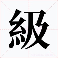 “級” 字共有 9 画,拼音:jí,注音:ㄐㄧˊ,部首:糹,笔画数:9 画,字体结构:左右结构,五行:火,五笔:XEYY,Unicode编码:U+7D1A,郑码:ZYMS,仓颉:VFNHE,“級”字笔顺为:フフ丶丶丶丶ノフ丶