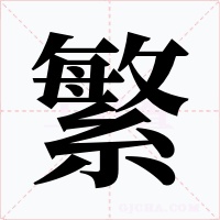 “繁” 字共有 17 画,拼音:fán,pó,注音:ㄈㄢˊ|ㄆㄛˊ,部首:糸,笔画数:17 画,字体结构:上下结构,五行:水,五笔:TXGI,Unicode编码:U+7E41,郑码:MAMZ,仓颉:OKVIF,“繁”字笔顺为:ノ一フフ丶一丶ノ一ノ丶フフ丶丨ノ丶