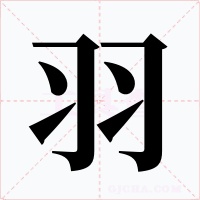 “羽” 字共有 6 画,拼音:yǔ,注音:ㄩˇ,部首:羽,笔画数:6 画,字体结构:左右结构,五行:土,五笔:NNYG,Unicode编码:U+7FBD,郑码:YTYT,仓颉:SMSIM,“羽”字笔顺为:フ丶一フ丶一