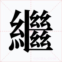 “繼” 字共有 20 画,拼音:jì,注音:ㄐㄧˋ,部首:糹,笔画数:20 画,字体结构:左右结构,五行:火,五笔:XXXN,Unicode编码:U+7E7C,郑码:ZZZZ,仓颉:VFVVI,“繼”字笔顺为:フフ丶丶丶丶フフ丶フフ丶一フフ丶フフ丶フ