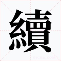 “續” 字共有 21 画,拼音:xù,注音:ㄒㄩˋ,部首:糹,笔画数:21 画,字体结构:左右结构,五行:金,五笔:XFLM,Unicode编码:U+7E8C,郑码:ZBLL,仓颉:VFGWC,“續”字笔顺为:フフ丶丶丶丶一丨一丨フ丨丨一丨フ一一一ノ丶