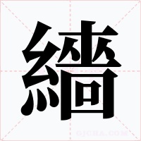 “繬” 字共有 19 画,拼音:sè,注音:ㄙㄜˋ,部首:糹,笔画数:19 画,字体结构:左右结构,五行:火,五笔:XFWK,Unicode编码:U+7E6C,郑码:ZBJJ,仓颉:VFGOW,“繬”字笔顺为:フフ丶丶丶丶一丨ノ丶ノ丶一丨フ丨フ一一