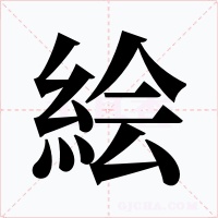 “絵” 字共有 12 画,拼音:huì,注音:ㄏㄨㄟˋ,部首:糹,笔画数:12 画,字体结构:左右结构,五行:木,五笔:XWFC,Unicode编码:U+7D75,郑码:ZOBZ,仓颉:VFOMI,“絵”字笔顺为:フフ丶丶丶丶ノ丶一一フ丶