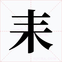 (象形。古代的一种翻土农具,形如木叉,上有曲柄,下面是犁头,用以松土,可看作犁的前身。“耒”是汉字部首之一,从“耒”的字,与原始农具或耕作有关。本义:古代的一种农具,形状像木叉)同本义〖plough〗