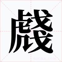 “虥” 字共有 16 画,拼音:zhàn,注音:ㄓㄢˋ,部首:虍,笔画数:16 画,字体结构:左右结构,五行:金,五笔:HAMA,Unicode编码:U+8665,郑码:IHHH,仓颉:YNII,“虥”字笔顺为:丨一フノ一フノフ一フノ丶一フノ丶