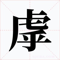 “虖” 字共有 11 画,拼音:hū,注音:ㄏㄨ,部首:虍,笔画数:11 画,字体结构:左上包围结构,五行:木,五笔:HATH,Unicode编码:U+8656,郑码:IHMU,仓颉:YPHFD,“虖”字笔顺为:丨一フノ一フノ丶ノ一丨